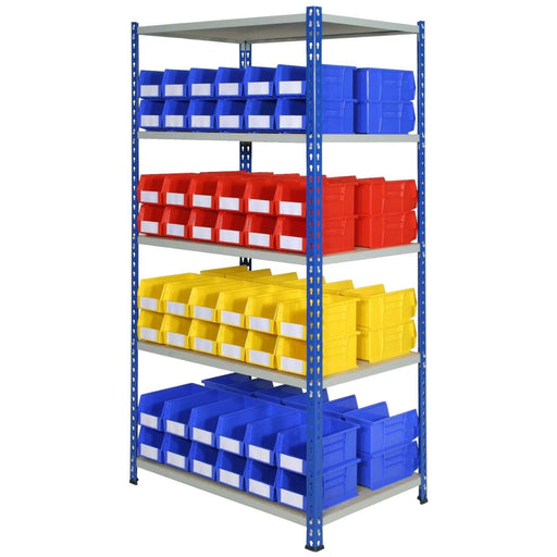 SAC J Rivet Racking Bay 1830mm H x 915mm W x 305mm D c/w 5 Shelf Levels - Blue & Grey c/w 48 x ARTB30 Plastic Bins